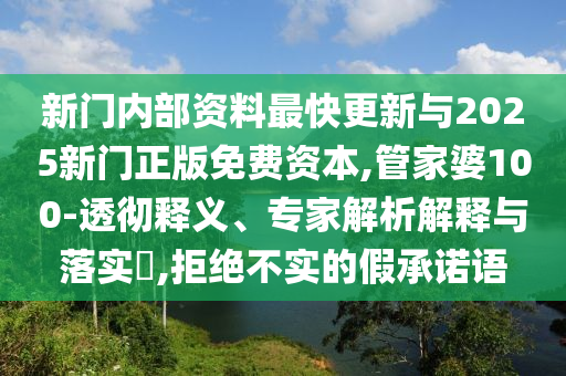 新門內(nèi)部資料最快更新與2025新門正版免費資本,管家婆100-透徹釋義、專家解析解釋與落實?,拒絕不實的假承諾語