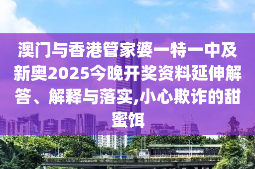 澳門與香港管家婆一特一中及新奧2025今晚開獎(jiǎng)資料延伸解答、解釋與落實(shí),小心欺詐的甜蜜餌